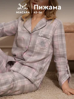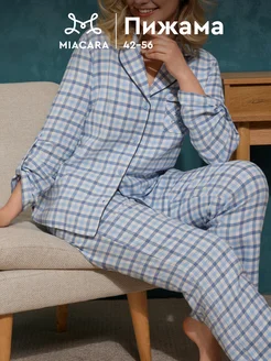 Пижама со штанами и рубашкой в клетку теплая хлопок фланель