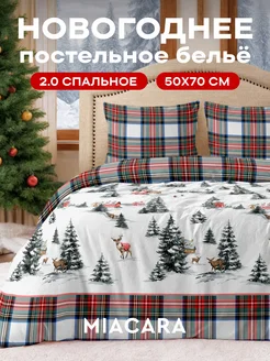 Новогоднее постельное белье 2 спальное поплин 50х70