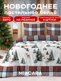 Новогоднее постельное белье 2 спальное на резинке простынь
