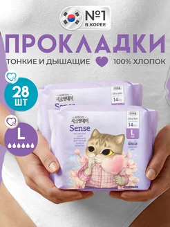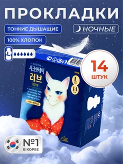 Прокладки женские ночные с крылышками корейские L 14 шт