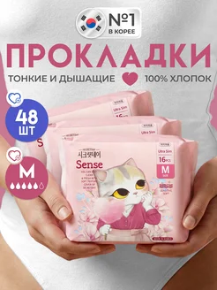 Прокладки женские гигиенические с крылышками корея M 48 шт