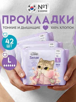 Прокладки женские ночные с крылышками корейские L 42 шт