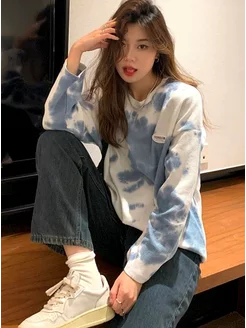Толстовка свитшот без капюшона оверсайз в полоску