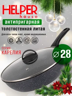Сковорода с крышкой антипригарная 28 см со съемной ручкой