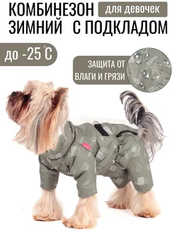 Зимний утепленный комбинезон пуховик для собак мелких пород