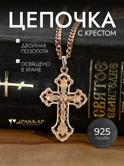 Цепочка с крестиком на шею серебро 925 в позолоте