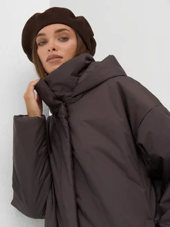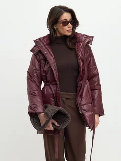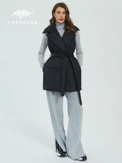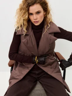 Жилет утепленный удлиненный коричневый c поясом на осень