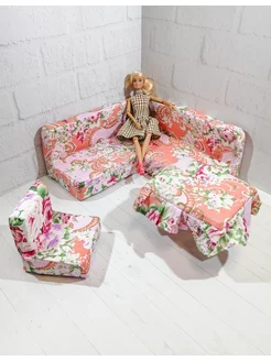 Диван угловой для барби, кресло и стол