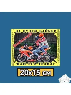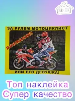 Наклейки на авто Внимание за рулем байкер 20х15 см