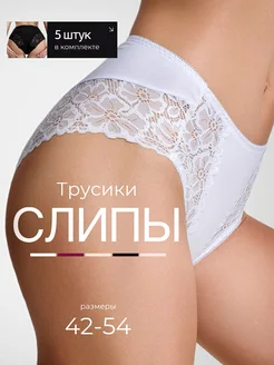 Трусы кружевные с высокой посадкой слипы набор 5 штук