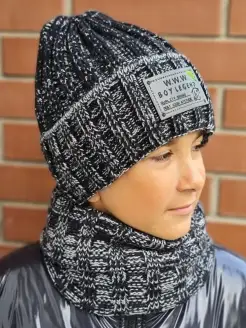 Шапка зимняя для девочки с ушками снуд и митенки комплект
