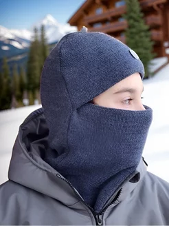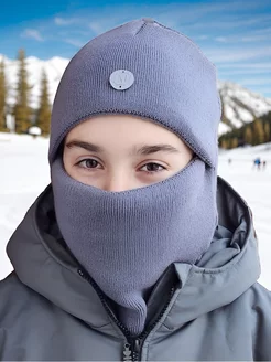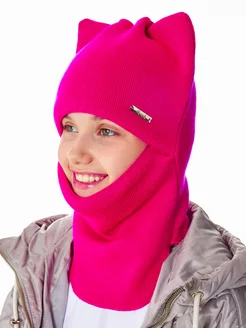 Шапка-шлем детский балаклава зима для девочки с ушками