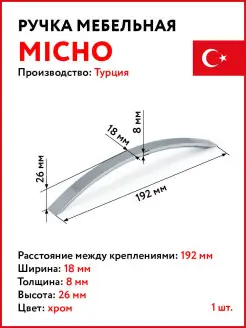 Ручка мебельная хром для кухни шкафа 192 мм