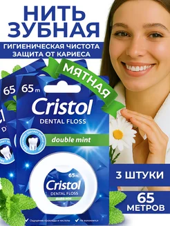 Зубная нить вощеная тонкая плоская, набор 3 шт
