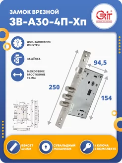 Замок на дверь врезной ЗВ-А30-4П-Хп