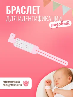 Бирка браслет для новорожденного (розовая, для девочки)