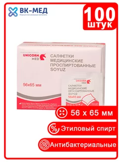 Салфетки спиртовые медицинские Soyuz 56х65 мм, 100 шт