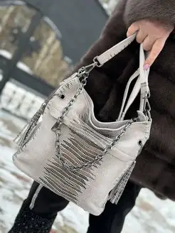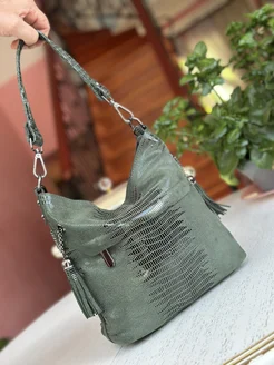 Сумка через плечо замшевая средняя кожаная