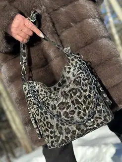 Сумка с двухсторонним кожаным ремнем на цепочке