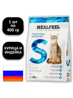 1 шт, 400 г, Senior, Сухой корм, Курица, Индейка