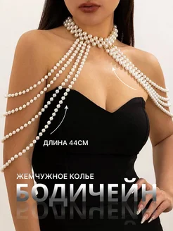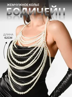 Бодичейн жемчужный цепочка на тело, колье многослойное