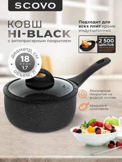 Ковш с крышкой 1,7 л антипригарный Hi-Black