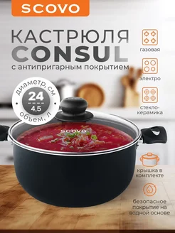 Сковорода Сотейник Consul 26 см со стеклянной крышкой