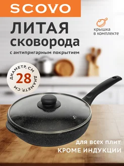 Сковорода с крышкой 28 см литая с несьёмной ручкой