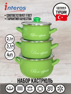 Набор кастрюль эмалированных 2л 3л 4л Овощи
