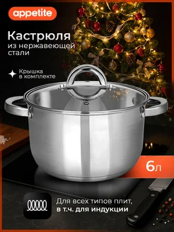 Кастрюля 6 л со стеклянной крышкой нержавеющая сталь