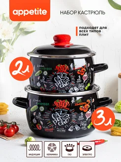 Набор кастрюль эмалированных с крышками для всех типов плит