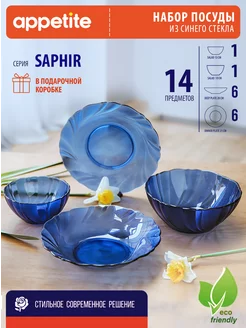 Сервиз столовый стеклянный 14 предметов Набор посуды