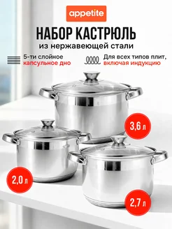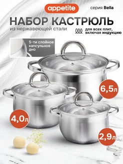Набор кастрюль из нержавеющей стали со стеклянными крышками