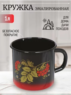Кружка сталь, эмалированное покрытие, 1 л, красно-черная