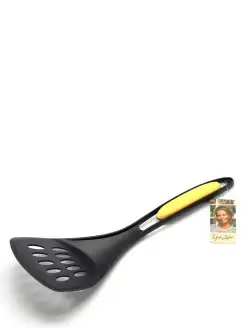 Лопатка кулинарная с прорезями широкая черная желтая EDY07