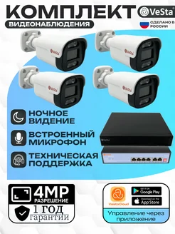 Комплект видеонаблюдения IP, 4 уличных камеры 4Мп