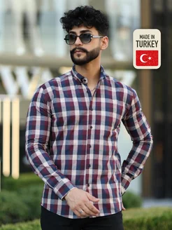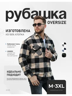 Рубашка оверсайз в клетку теплая фланеливая длинный рукавом
