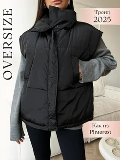 Жилетка утепленная оверсайз безрукавка осенне-весенние
