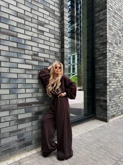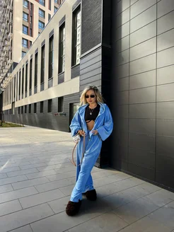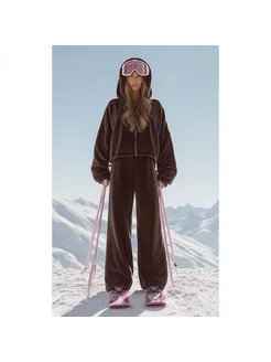 костюм зимний женский двусторонний флис плюшевый оверсайз