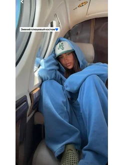 Костюм зимний женский двусторонний флис плюшевый оверсайз