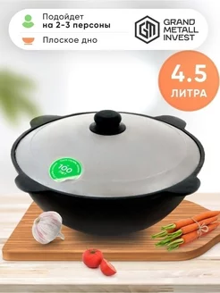 Казан чугунный с крышкой для плова, плиты, Узбекский 4.5 л