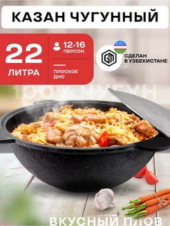 Казан чугунный с крышкой для плова, плиты, Узбекский 16 л