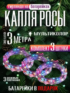 Гирлянда на батарейках новогодняя светодиодная роса 3 м 3 шт