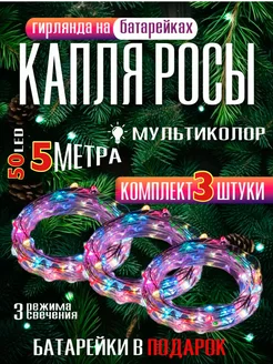 Гирлянда на батарейках новогодняя светодиодная роса5 м 3 шт