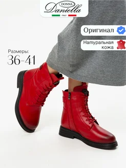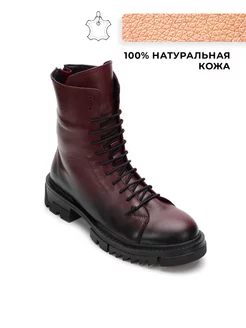 Ботинки берцы натуральная кожа на толстой подошве красные