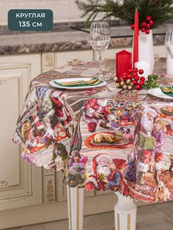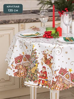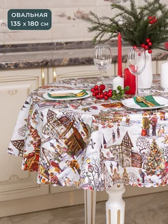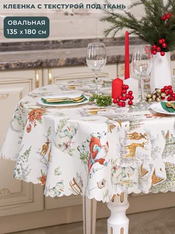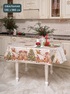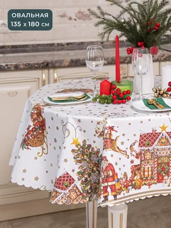 Новогодняя скатерть клеенка овальная 135x180 см на стол