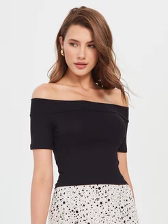 Кроп топ черный с открытыми плечами