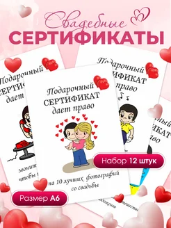 Шуточные сертификаты Love is для свадьбы 12 штук