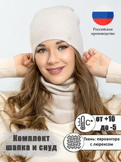 Комплект шапка и снуд бежевый