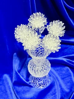 Хрустальные Хризантемы 5 шт. в Вазочке из Горного Хрусталя